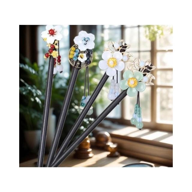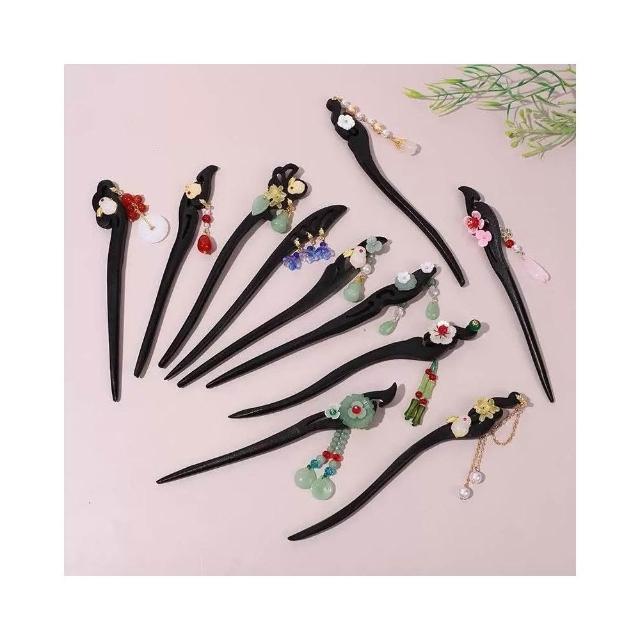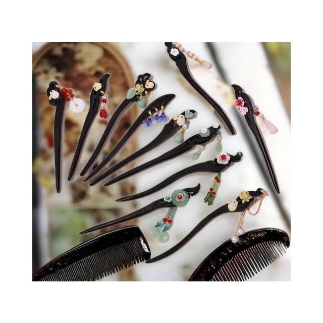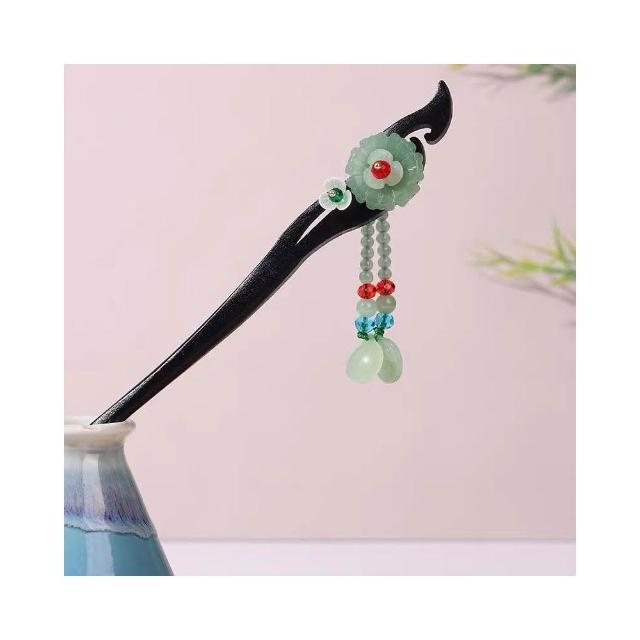 {遇見臻品}C153綠冉冉髮簪旗袍髮飾古風流蘇髮髻步搖古裝髮釵國風漢服髮釵子黑檀木簪盤頭漢服配件漢服旗袍頭飾漢服簪子髮髻