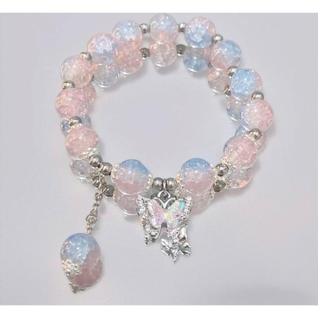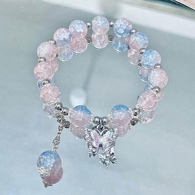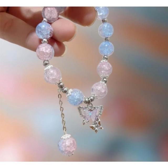 {遇見臻品}BF038琉璃蝴蝶手鍊琉璃手環蝴蝶手鍊蝴蝶水晶手鍊蝴蝶櫻花水晶手鍊國風手飾水晶手環ins飾品中式古風手環飾品