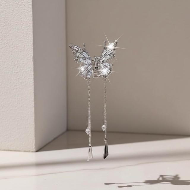 {遇見臻品}BB145鋯石蝴蝶流蘇髮夾絕美設計感髮飾古風漢服配飾抖音同款閃鑽蝴蝶流蘇抓夾輕奢高級感髮夾網紅氣質鯊魚夾
