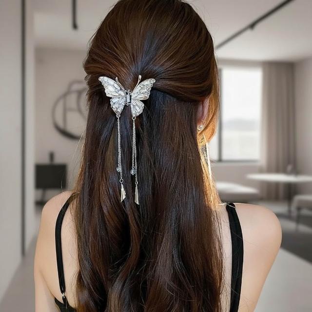 {遇見臻品}BB145鋯石蝴蝶流蘇髮夾絕美設計感髮飾古風漢服配飾抖音同款閃鑽蝴蝶流蘇抓夾輕奢高級感髮夾網紅氣質鯊魚夾