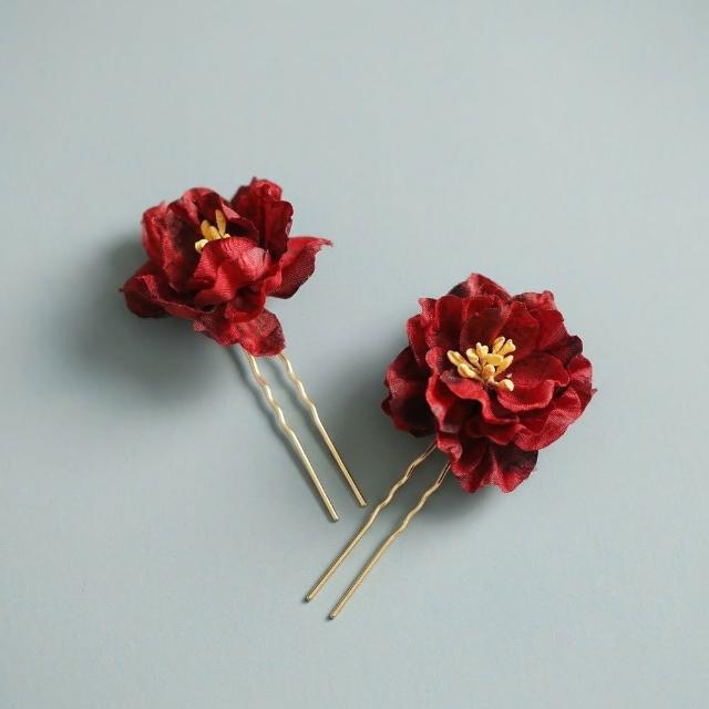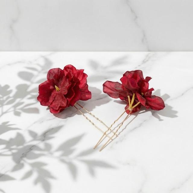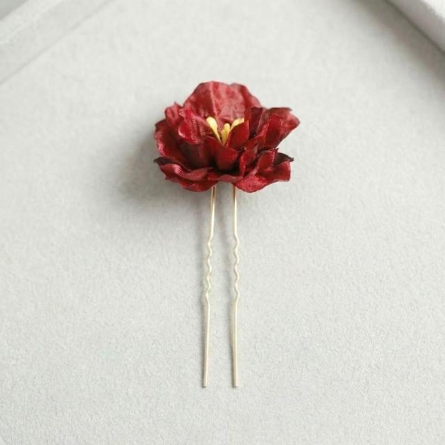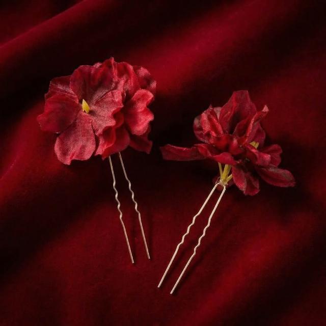 遇見臻品古典紅牡丹仿真花髮簪 中式旗袍漢服配飾 婚禮新娘造型頭飾 (現貨/氣質點綴/手工布藝/開運紅) FA213
