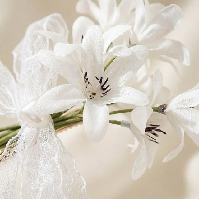遇見臻品白皙百合蕾絲蝴蝶結髮飾 珍珠花卉長流蘇頭飾 新娘背影造型 婚禮白紗配飾 (現貨/森林系/女神範) FA214