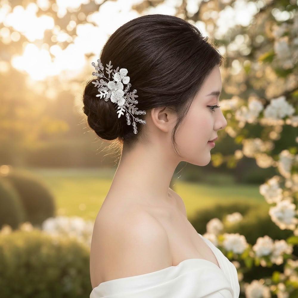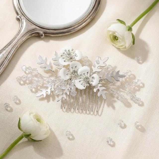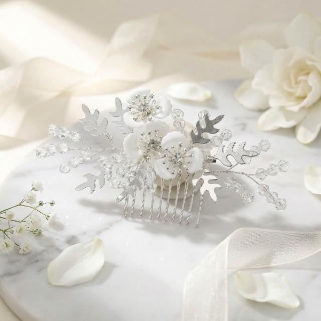 遇見臻品白瓷花卉晶鑽髮飾 新娘盤髮頭飾 婚禮造型側邊配飾 婚紗髮插 (現貨/韓系唯美/伴娘寫真/法式優雅)FA219