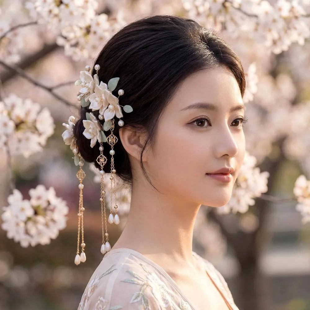 遇見臻品溫潤珍珠花卉髮簪組 仙氣流蘇步搖頭飾 新娘盤髮配飾 漢服婚禮造型 (現貨/高雅/髮釵髮夾/古風) FA220