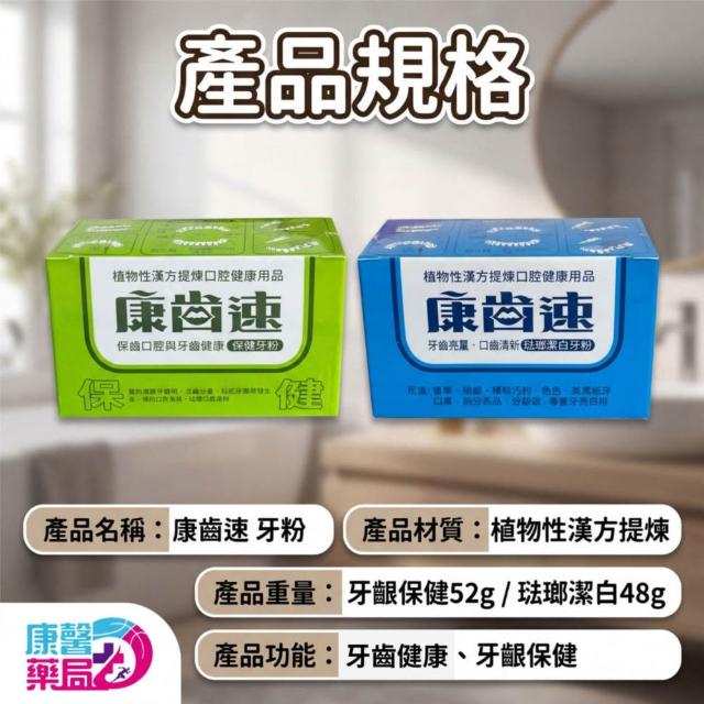 康齒速 牙粉 送20包隨身包 植物性漢方 牙齦保健52g/琺瑯潔白48g 牙齒 口腔清潔 牙粉 潔牙粉
