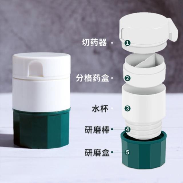 康馨藥局四合一切藥盒 便攜式磨藥器 自帶水杯 便攜式磨藥器 分格藥盒 切藥片迷你切藥 分割器藥盒分藥器 碎藥