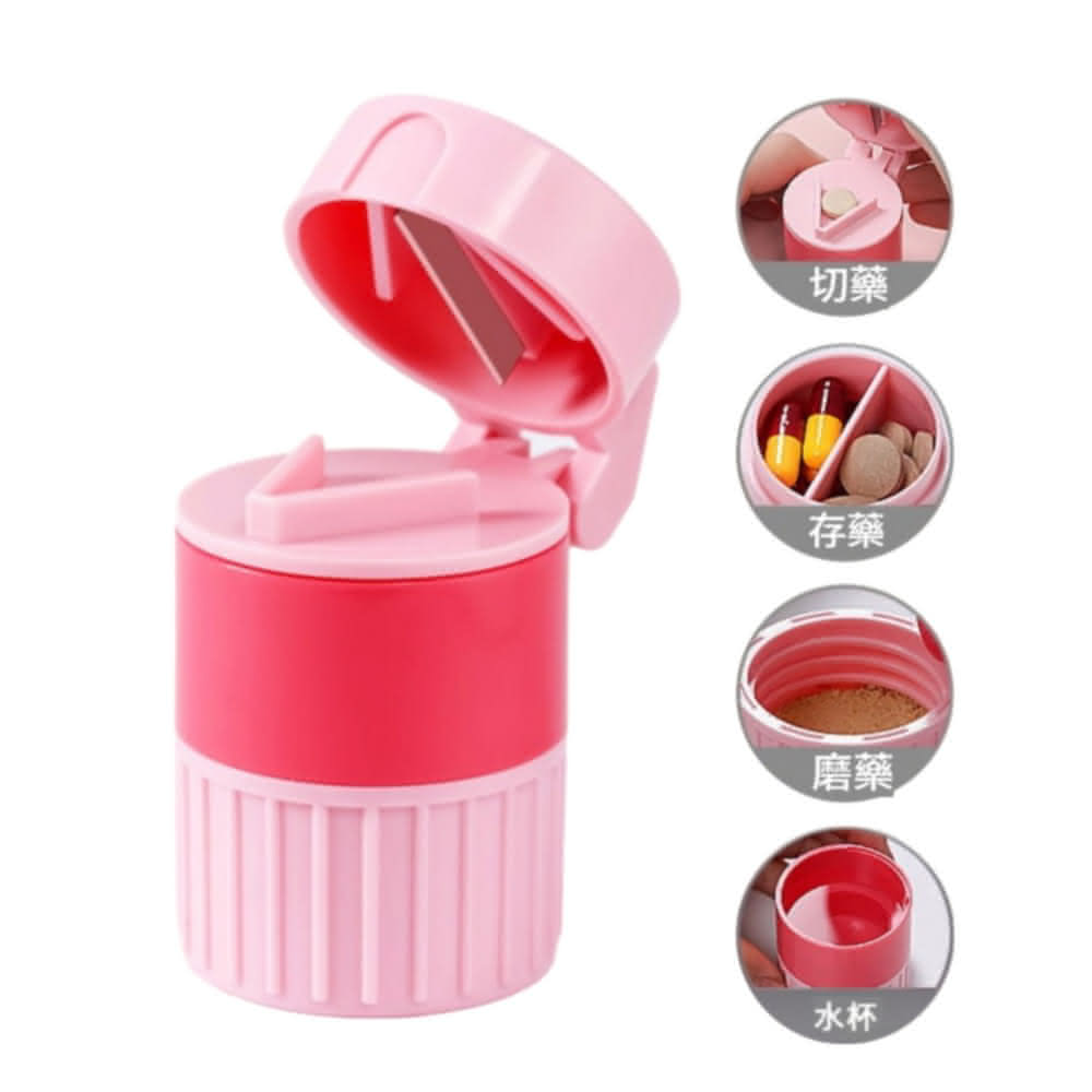 康馨藥局四合一切藥盒 便攜式磨藥器 自帶水杯 便攜式磨藥器 分格藥盒 切藥片迷你切藥 分割器藥盒分藥器 碎藥