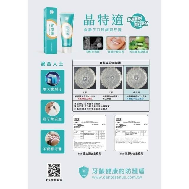 晶特適負離子口腔護理牙膏|食品級天然鈣薄荷配方|潔淨牙齒 × 清新口氣 × 溫和護齦|不含氟、不含三氯沙