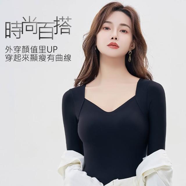 莎邦婗37度恆溫玻尿酸美肌衣帶胸墊無痕深V高彈隱形內搭衣長袖保暖衣(保暖/蓄熱/保濕/抗靜電/顯瘦衛生衣)