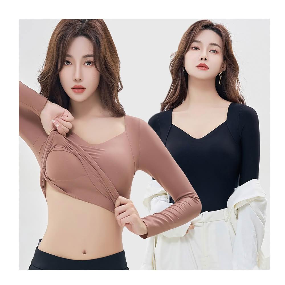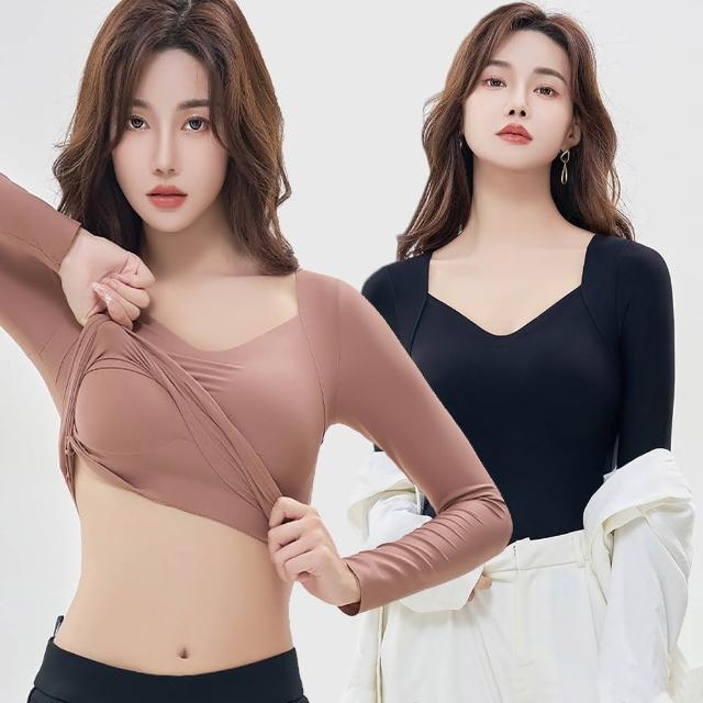 莎邦婗37度恆溫玻尿酸美肌衣帶胸墊無痕深V高彈隱形內搭衣長袖保暖衣(保暖/蓄熱/保濕/抗靜電/顯瘦衛生衣)