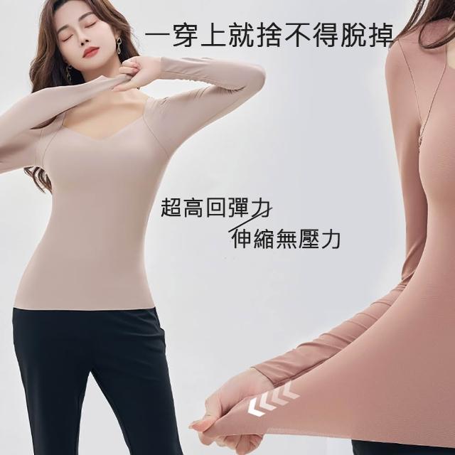 莎邦婗37度恆溫玻尿酸美肌衣帶胸墊無痕深V高彈隱形內搭衣長袖保暖衣(保暖/蓄熱/保濕/抗靜電/顯瘦衛生衣)