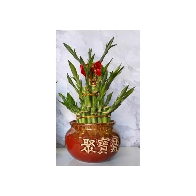 花森好市-桌上盆栽-送禮室內植物**聚寶盆開運竹(有3組規格)**幸運竹/高約25cm*(花器如遇短缺,以類似花器替代)