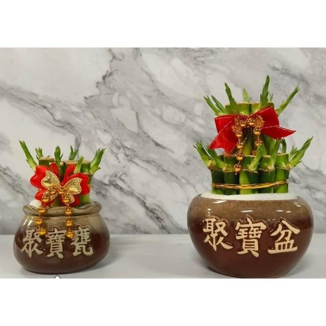 花森好市-桌上盆栽-送禮室內植物**聚寶盆開運竹(有3組規格)**幸運竹/高約25cm*(花器如遇短缺,以類似花器替代)