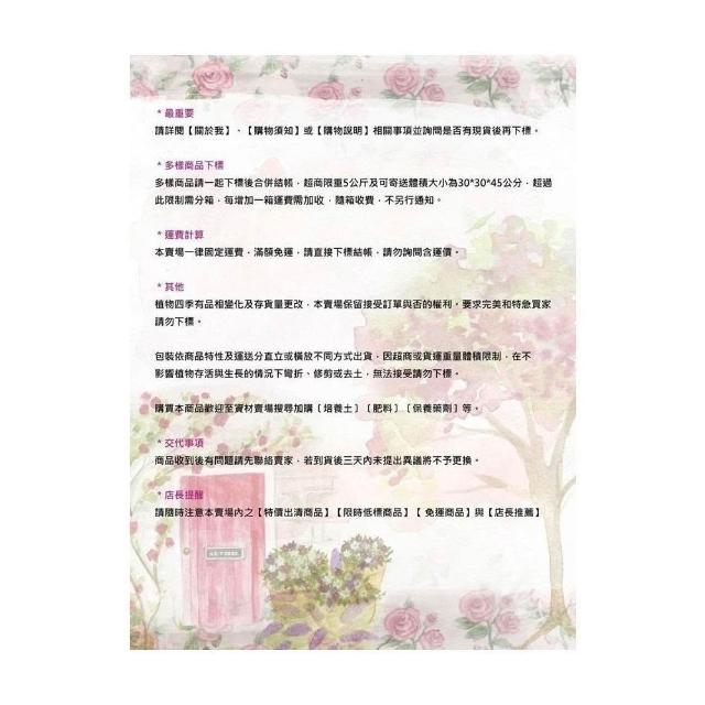 - 依照客戶指定配送之商品(約配商品)接獲訂單逾30日您未通知出貨及受領商品,為了保障您的權益,商店得取消訂單,請客戶重新下單購買。