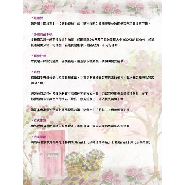 • 依照客戶指定配送之商品(約配商品)接獲訂單逾30日您未通知出貨及受領商品,為了保障您的權益,商店得取消訂單,請客戶重新下單購買。
