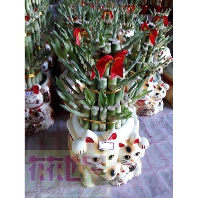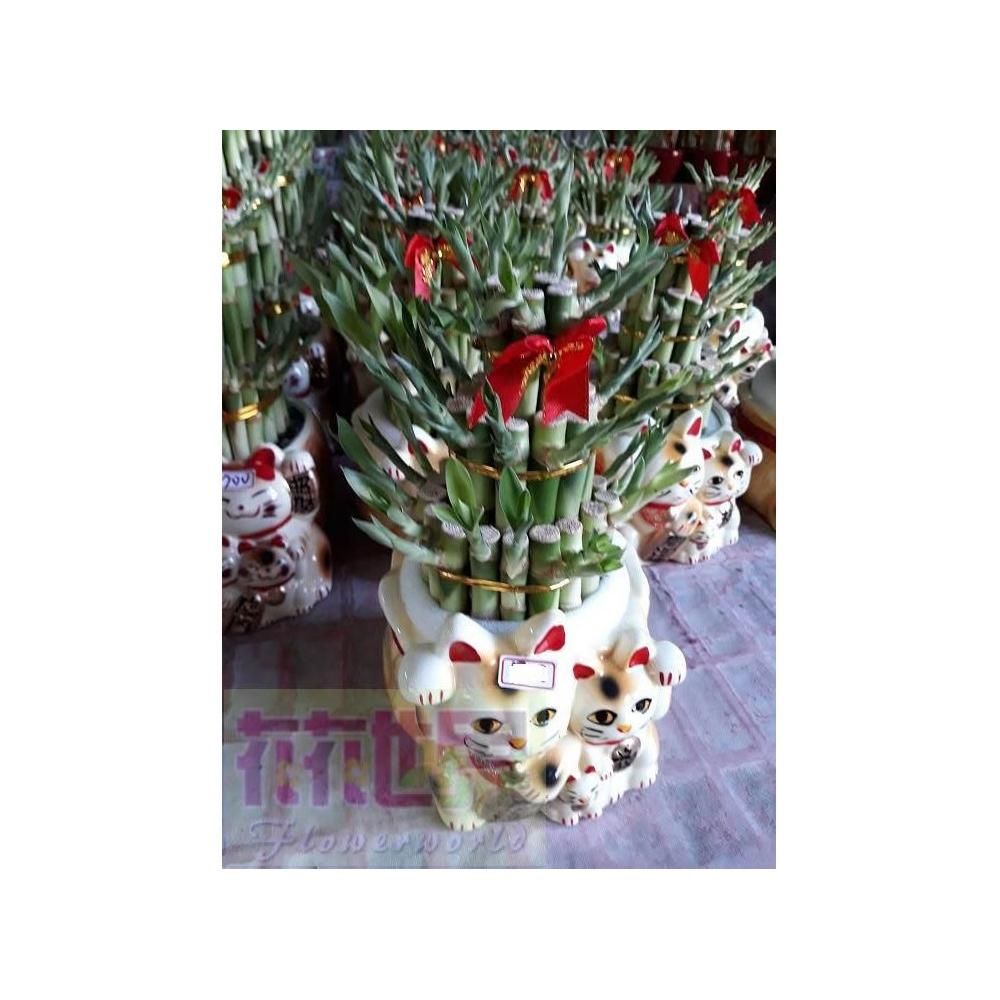 花森好市-室內植物**開運竹(招財貓小三層)**-幸運竹-約25CM/ 送禮自用兩相宜*(花器如遇短缺,以類似花器替代)