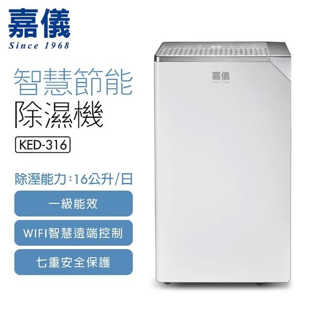 嘉儀 一級能效大水箱智慧節能除濕機 KED-316(WIFI操控/360度萬用輪/乾衣功能/兒童安全鎖)