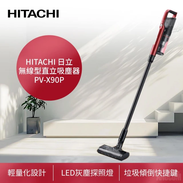 HITACHI 日立免紙袋無線型直立吸塵器 PV-X90P(LED灰塵探照燈/一鍵拆卸集塵盒/壁掛式充電座)