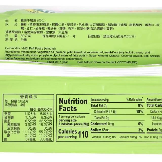 義美杏仁千層派(8入/包) 杏仁 葡萄蜂蜜 獨立包裝(全素 傳統餅乾)