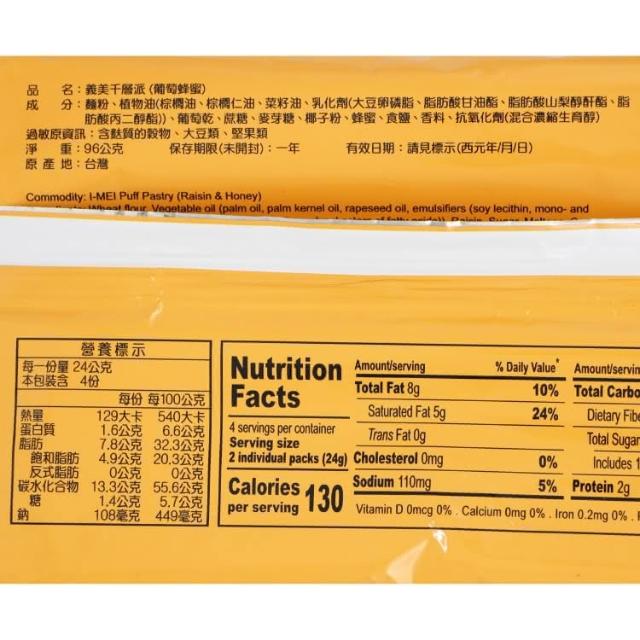義美杏仁千層派(8入/包) 杏仁 葡萄蜂蜜 獨立包裝(全素 傳統餅乾)