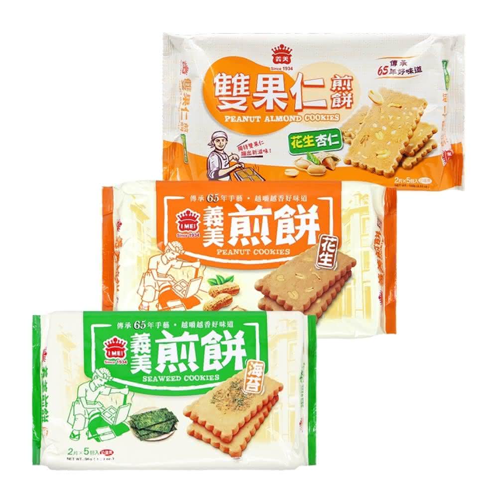 義美煎餅 雙果仁煎餅 100g/96g 袋裝 海苔 花生 花生杏仁 杏仁南瓜子(每包2片裝/5包為一袋)