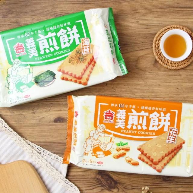 義美煎餅 雙果仁煎餅 100g/96g 袋裝 海苔 花生 花生杏仁 杏仁南瓜子(每包2片裝/5包為一袋)