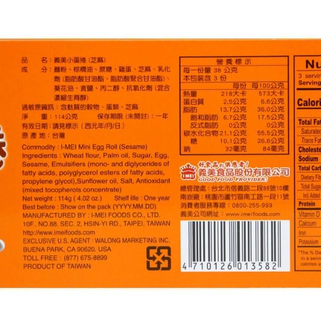 義美小蛋捲量販盒 114g 內含獨立包裝 38gx3包(原味 芝麻)