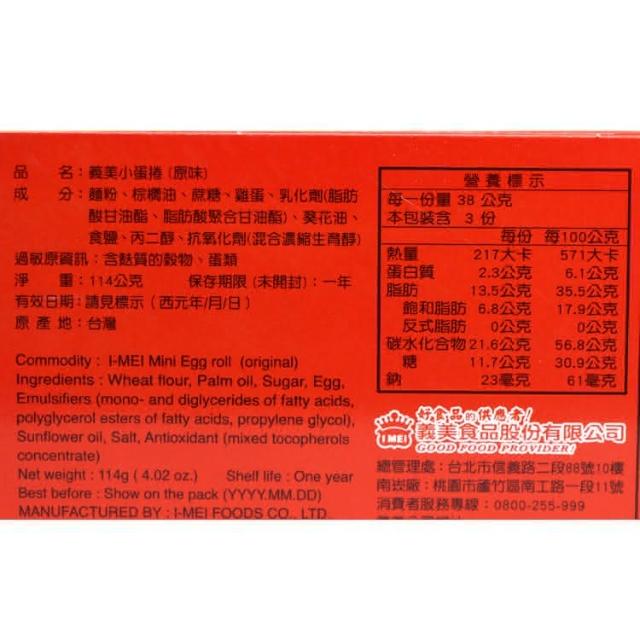 義美小蛋捲量販盒 114g 內含獨立包裝 38gx3包(原味 芝麻)