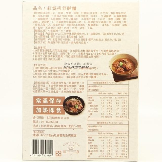和秋和秋 紅燒排骨酥麵 530g 加熱即食 常溫保存 即食料理包 排骨酥 排骨酥麵 紅燒 團購美食