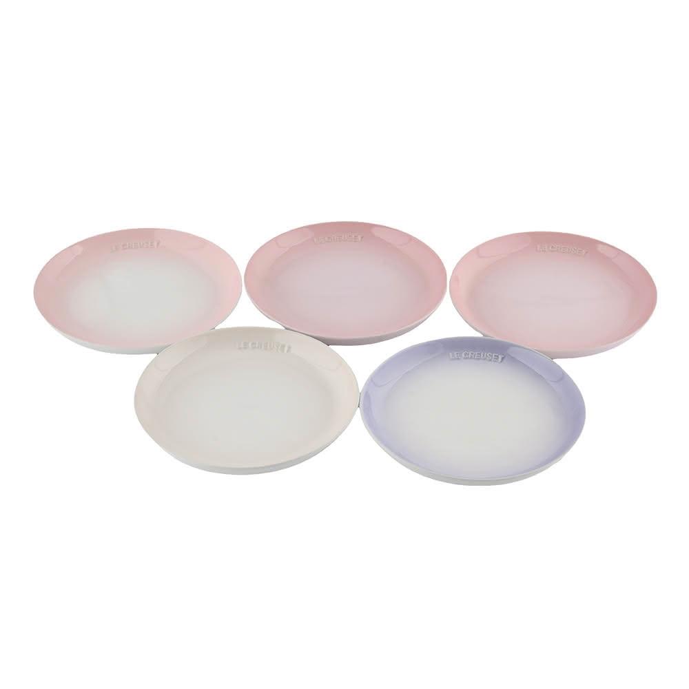 Le Creuset花蕾系列圓形淺盤組22cm5入貝殼粉/淡粉紅/淡粉紫/牛奶粉/蛋白霜餐盤造型盤圓盤 入厝禮