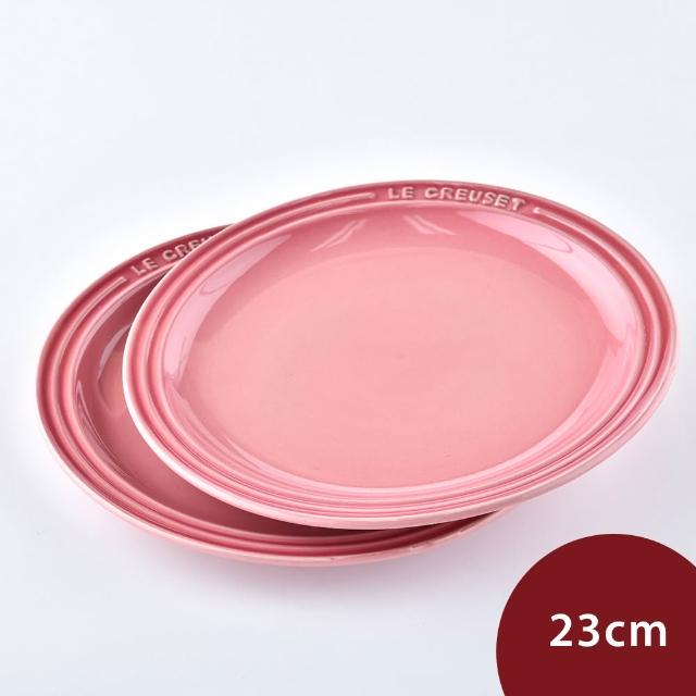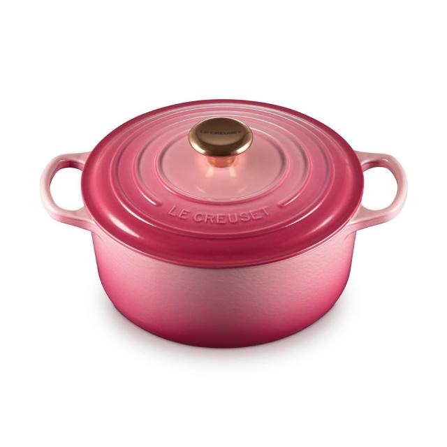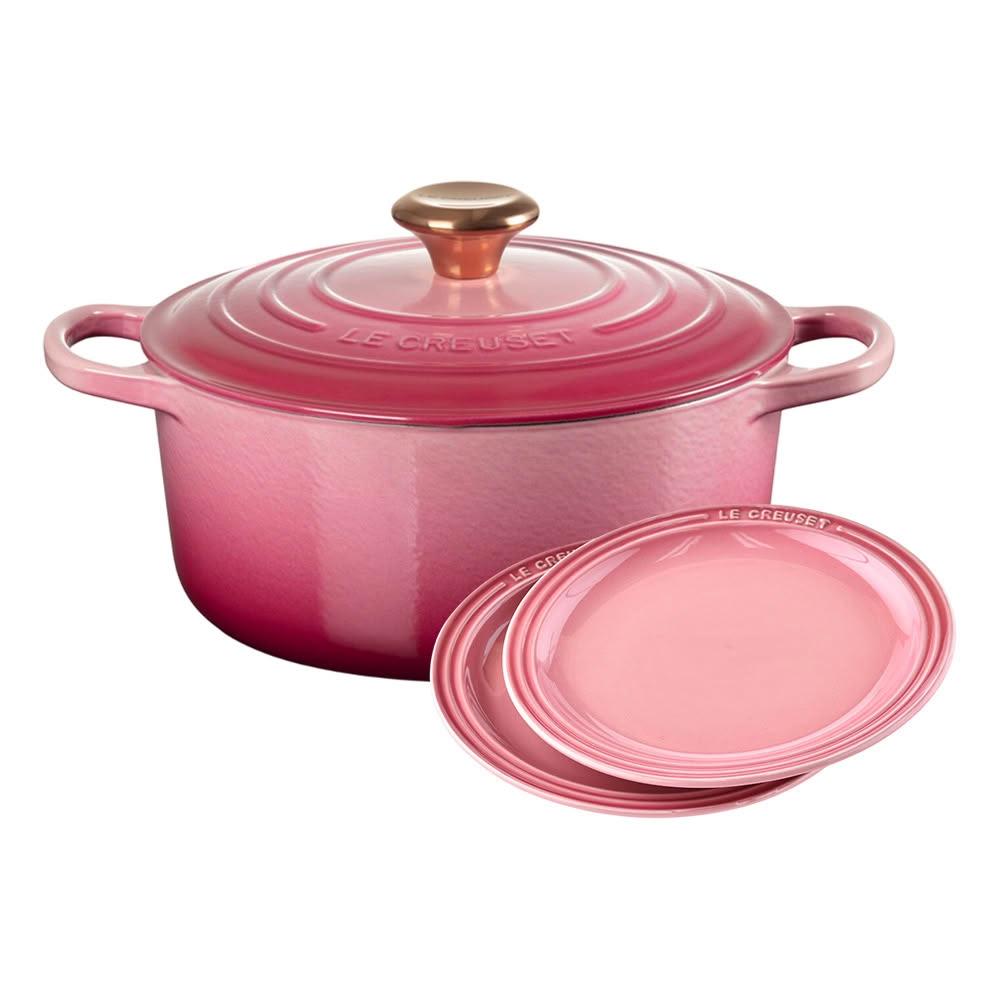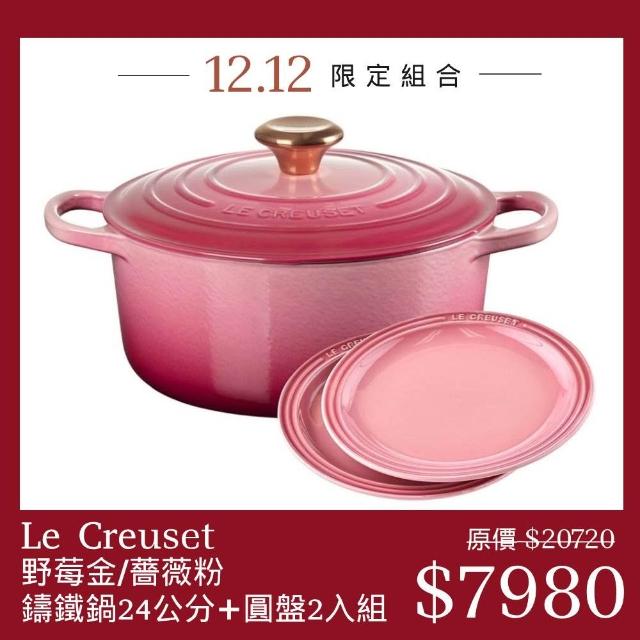 Le Creuset典藏圓形鑄鐵鍋 24cm 野莓金 + 圓形淺盤 23cm 薔薇粉 2入 聖誕禮物