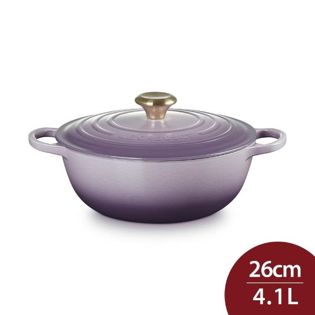 Le Creuset媽咪鑄鐵鍋 26cm 4.1L 藍鈴紫 淡金頭 法國製 媽咪鍋 {電磁爐 IH爐}湯鍋燉鍋炒鍋 入厝禮 交換禮物