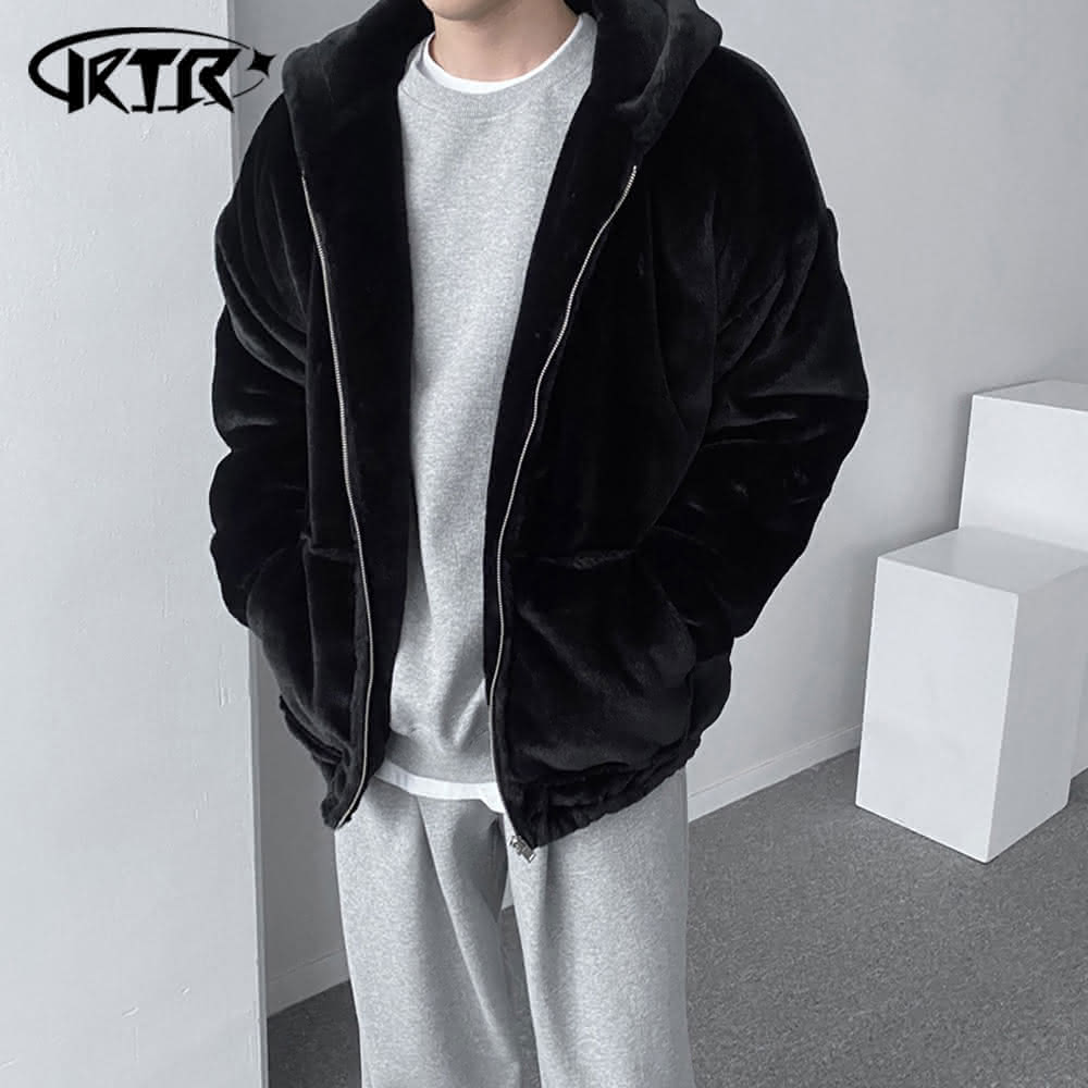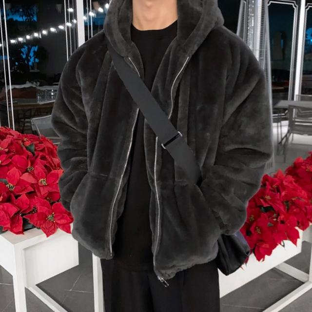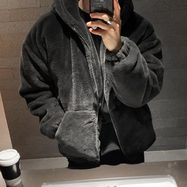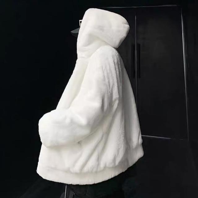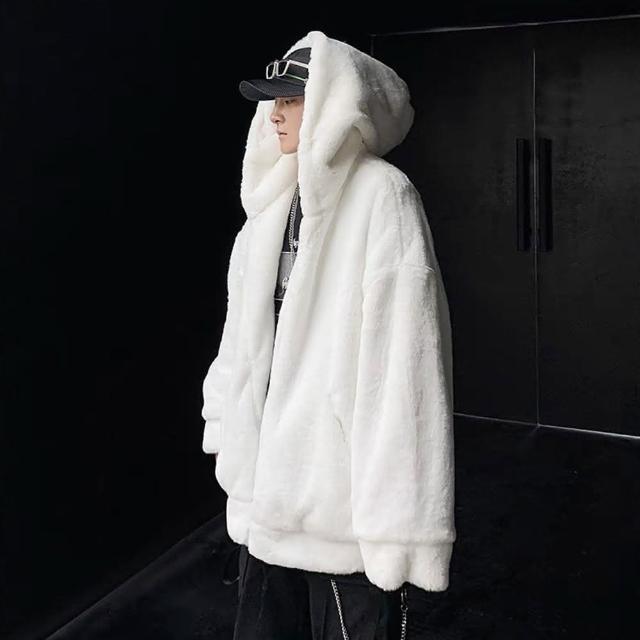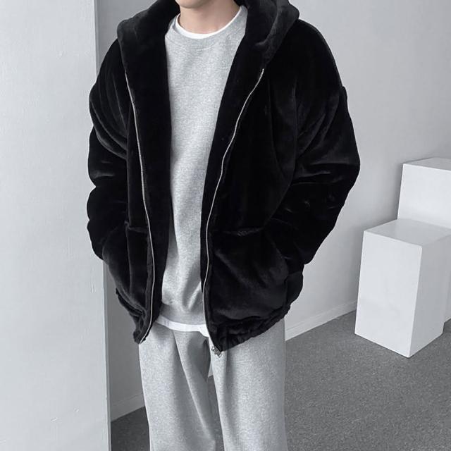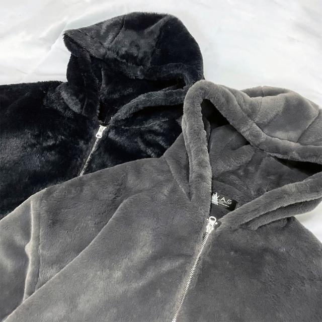 KTR素色雪雕絨 加厚款 兔寶寶 毛毛外套(雪雕絨 兔寶寶 毛毛 連帽外套 保暖 厚外套 毛外套 情侶 熊熊)