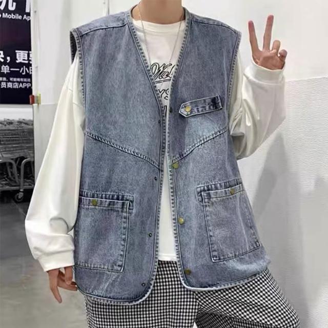 KTR日系穿搭 牛仔背心 日系工裝 CITYBOY 牛仔 背心(古著 街頭 穿搭 工裝背心 情侶)