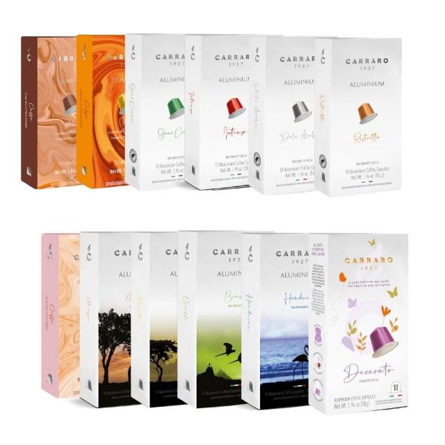 CARRARO頂級鋁質義大利原裝進口100顆 共10種風味隨機組合 適用Nespresso膠囊咖啡機商品效期 2027/01