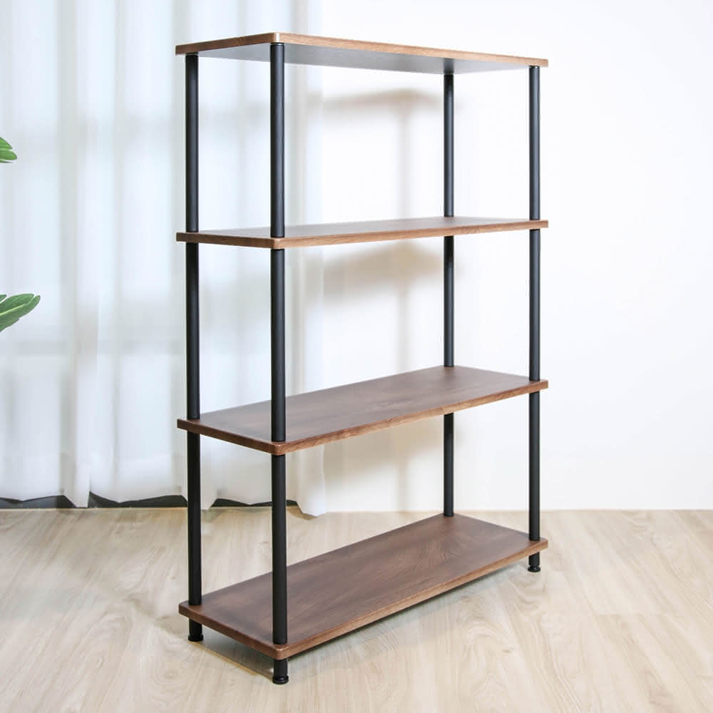 威格森家居工業自然風-鐵管四層架/2色白橡與胡桃(置物架/層架/鐵管架/收納架/DIY組合架/書架)
