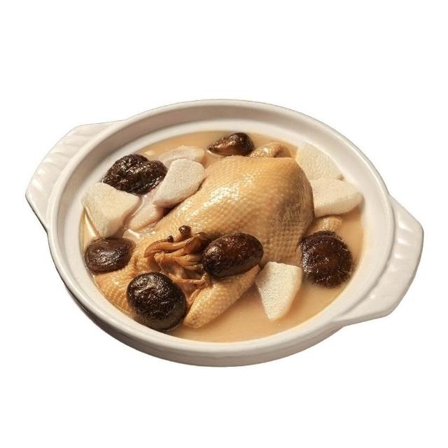- 全雞搭配山藥及多種菇類。