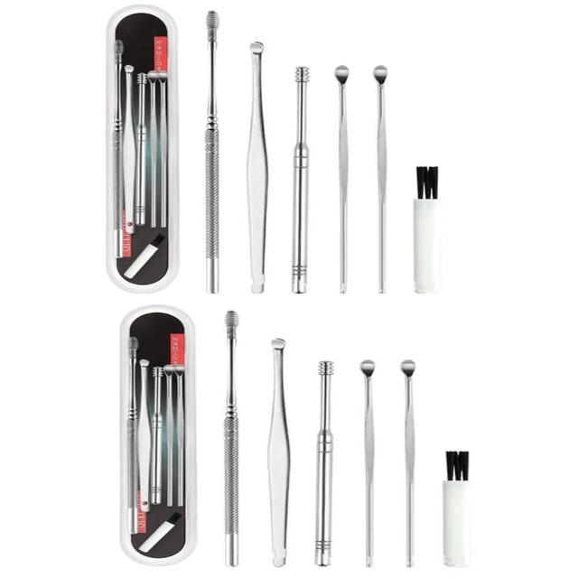 掏耳鋼衛生好用6件組 2組(耳勺采耳工具套裝成人清潔器挖耳棒 採耳棒 掏耳神器挖耳勺 掏耳器)