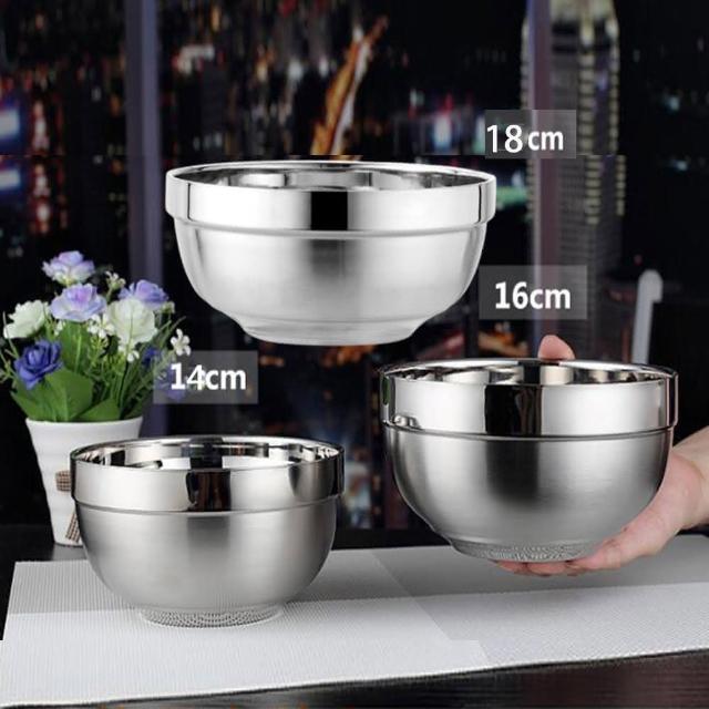 不銹鋼雙層隔熱湯飯碗18公分 16公分 14公分 1組(隔熱碗/環保碗/戶外/露營/衛生)