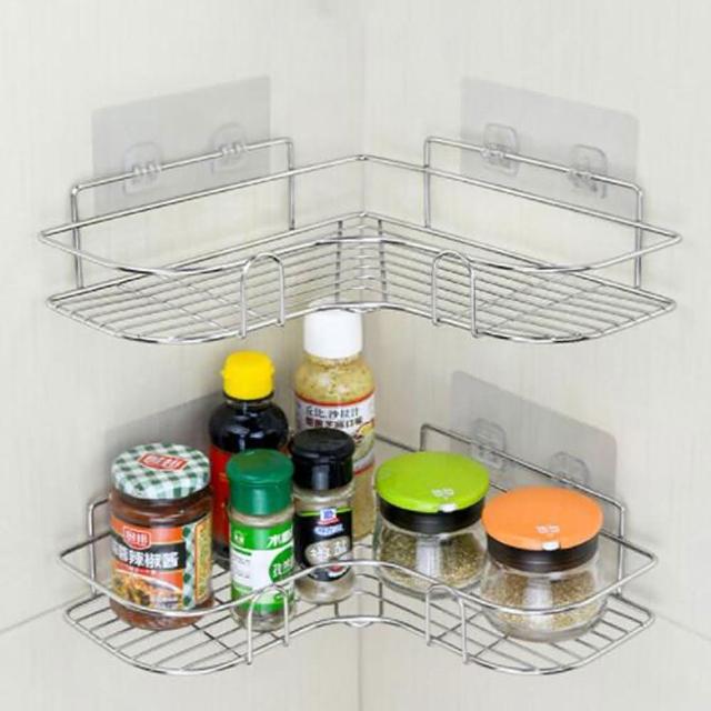無痕不鏽鋼L型轉角置物架1入(免打孔 三角架 鐵藝浴室收納架)