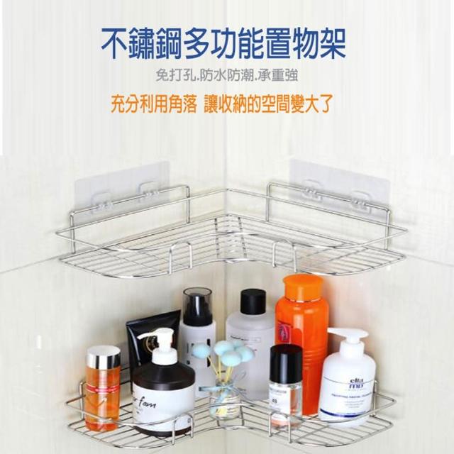無痕不鏽鋼L型轉角置物架1入(免打孔 三角架 鐵藝浴室收納架)