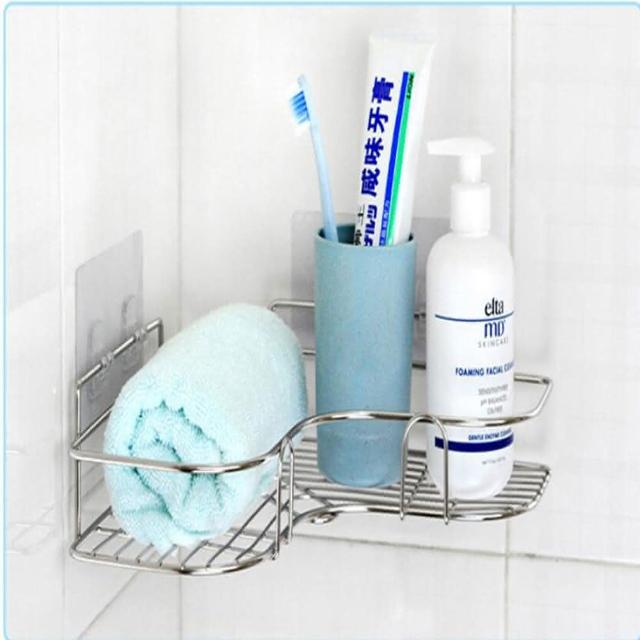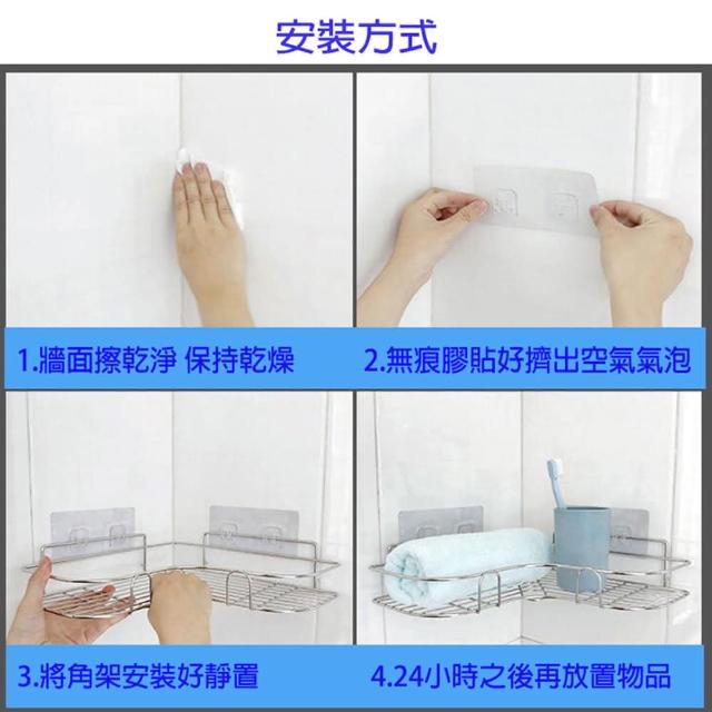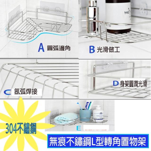 無痕不鏽鋼L型轉角置物架1入(免打孔 三角架 鐵藝浴室收納架)
