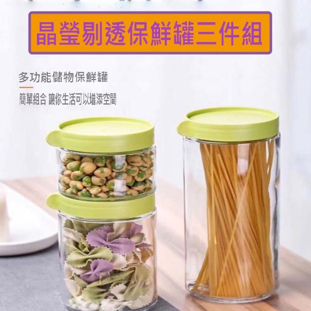廚房大容量玻璃密封罐分類保存罐3件組 1組(廚房必備密封罐 玻璃密封罐)
