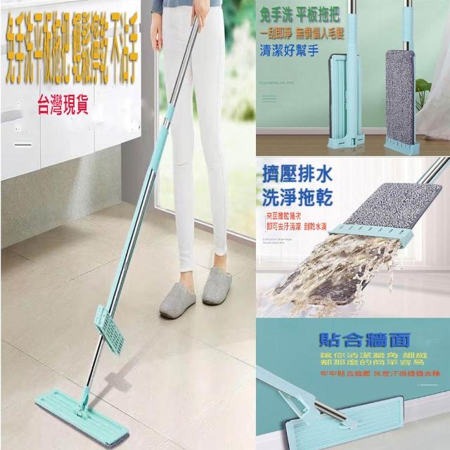 輕鬆擰乾不沾手免手洗平板拖把2入