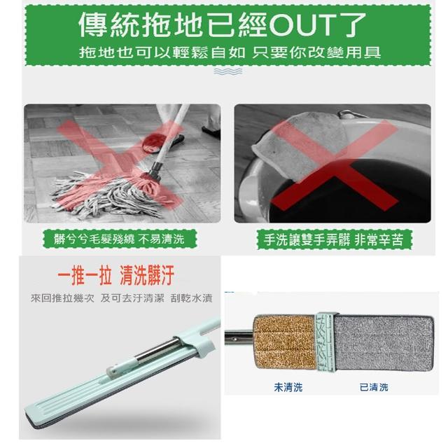 輕鬆擰乾不沾手免手洗平板拖把2入