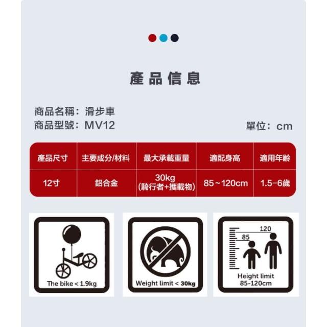 12吋兒童滑步車 兒童禮物 腳踏車 童車 RISHON 滑步車 MVP12 兒童自行車 日系腳踏車