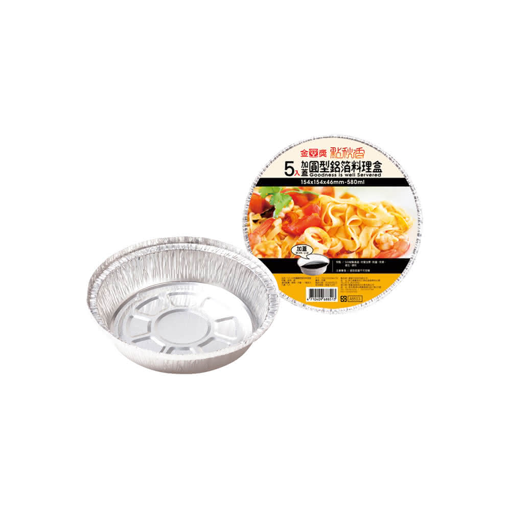百貨King 加蓋圓形鋁箔料理盒-580ml(5入)