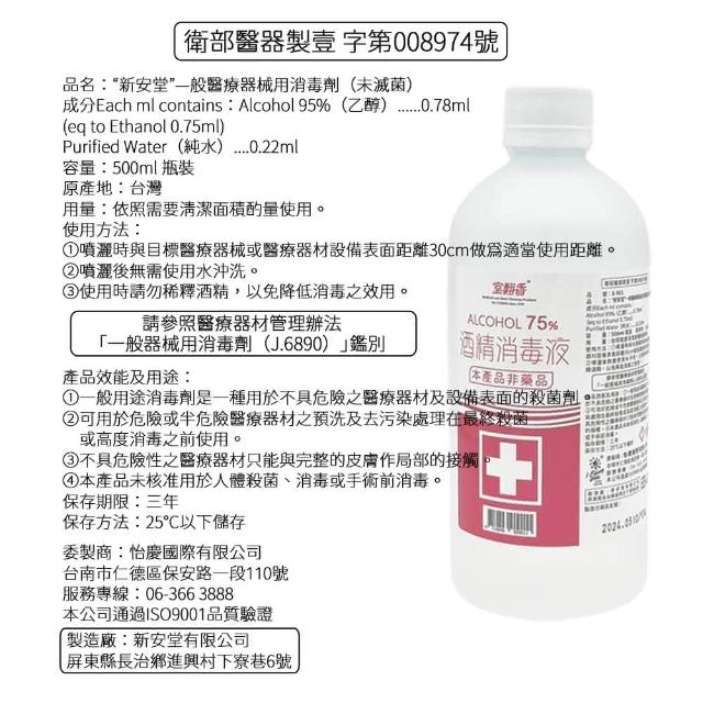 百貨King 室翲香75%酒精消毒液補充瓶(500ml)