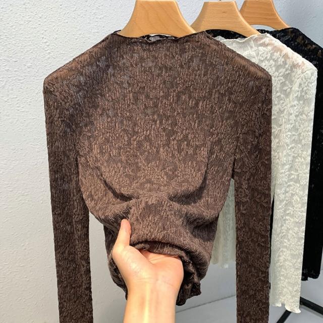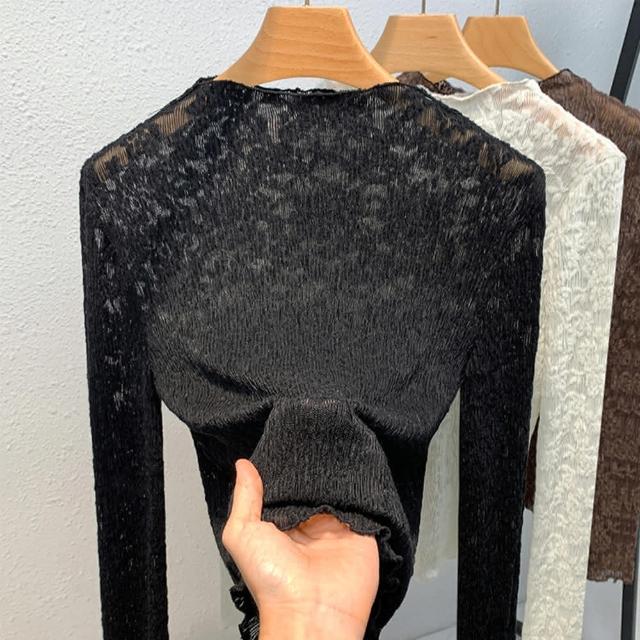 設計所在專注內搭系列 半高領花鏤空蕾絲內搭收腰上衣 J3D0820-HCL(3色 S-3XL可選)