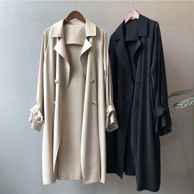 設計所在知性系列薄風衣韓版氣質寬鬆素色過膝外套YX0719(2色 XS-L可選)